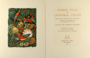1944. LIBRO: (BIBLIOFILIA). CASAS, BARTOLOME DE LAS: PRIMER VIAJE DE CRISTOBAL COLON SEGÚN SU DIARIO DE A BORDO. Recogido y transcrito por... Prefacio de Gregorio Marañon. Ilustraciones originales grabadas al boj por Antonio Ollé y Pinell....