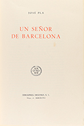 1945. LIBRO: (BIBLIOFILIA). PLA, JOSEP: UN SEÑOR DE BARCELONA. Barcelona: Ed. Destino, 1945. 8º mayor. 399 p. + 1 h. Ilustr. fuera de texto. Enc. en tela, conserva sus cubiertas originales. Primera edición. Tiraje de 100 ejemplares en papel de...