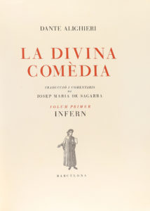 1947-1951. LIBRO: (BIBLIOFILIA). ALIGHIERI, DANTE; SAGARRA, JOSEP MARIA: LA DIVINA COMÈDIA. Traducción y comentarios de Josep María de Sagarra. Barcelona: Joan Sallent, 1947-1951. 3 vol. en folio. I: Infern, 566 p. Retrato de Dante en frontispicio...