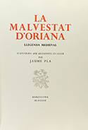 1948. LIBRO: (BIBLIOFILIA). CARNER, JOSEP; PLA, JAUME [grabador]: LA MALVESTAT D´ORIANA. Barcelona: La Rosa Vera, 1948. Folio. 131 p. + 2 h. Aguafuertes de Jaume Pla en el texto. Edición numerada de 59 ejemplares sobre papel de hilo con las barbas,...