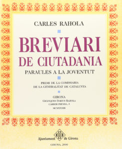 2000. LIBRO: (BIBLIOFILIA). RAHOLA, CARLES: BREVIARI DE CIUTADANIA. PARAULES A LA JOVENTUT. Girona: Ajuntament de Girona, 2000. Folio. 3 h. + 111 p. + 3 h. En rama. Ilustr. con 12 lám. en técnica mixta, algunas en color, todas numeradas y firmadas...