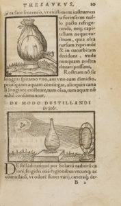 ANTONII VALETII IUANENSI LINGUAM RESPONSIO. Tiguri [Zurich]: Christopher Frosch, 1569 (en colfón). 8º menor. 8 h. (inclusive portada con emblema grabado del impresor) + 247 fol.+ 16 h., inclusive la última que contiene erratas y colofón. Enc. pergamino moderno. Grabados en madera de instrumentos de destilación y otros aparatos usados en Química y Farmacia. Edición muy rara, más un ejemplar completo. Contiene cuatro partes técnicas y las dos epístolas anunciadas en el título, y que están en las hojas finales. Aparatos generales de destilación; Elixires extraídos de plantas, animales y minerales, agua fuertes, precipitados, etc.; Óleos, gomas, etc.; Aqua vitae, sales, borax, oleo auri, auro potabili, etc. Ferguson, Books of secrets, 391.