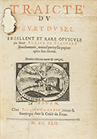 1642. LIBRO: (CIENCIA-SAL). VIGÈNERE, BLAISE DE: TRAICTE DU FEU ET DU SEL. Rouen: Iacques Caillove, 1642. 8º mayor. 2 h. + 167 p. Grabado en la portada, a dos tintas. Portada y primera h. laminadas y con pequeña pérdida por quemadura, no afecta...