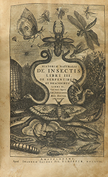 calcográficamente. Enc. en pergamino moderno. Este ejemplar no incluye el ´liber de Serpentibus et Draconibus´, que es mencionado en el frontispicio, ya que suelen presentarse los ejemplares por separado. Edición original con 28 láminas grabadas al cobre que contienen un total de 1575 figuras de insectos: abejas, mariposas, moscas, escarabajos, caracoles, estrellas de mar, etc. Tratado exhaustivo con las acciones de los insectos en la naturaleza, en la agricultura y la selvicultura, con los remedios para curar sus ataques a los humanos y centenares de referencias bibliográficas.