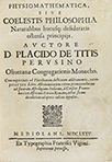 1675. LIBRO: (CIENCIAS-ASTRONOMÍA). TITIS, PLACIDO DE; DIDACO PRITTO PELUSIENSI; CURSINO FRANCOBACCI: PHYSIOMATHEMATICA, SIVE COELESTIS PHILOSOPHIA NATURALIBUS HUCUSQ; DESIDERATIS OSTENTA PRINCIPIIS. AUCTORE [...]. CUM NUPERRIMIS AD PLACIDIANAM...