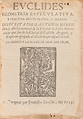 1723. LIBRO: (CIENCIAS- MATEMÁTICAS). DEU Y ABELLA, ANTONIO JOSEPH: EUCLIDES GEOMETRIA ESPECULATIVA, Y PRACTICA DE LOS PLANOS, Y SOLIDOS. Zaragoça: Francisco Revilla, 1723. 8º mayor. 7 h. + 175 p. + 4 lám. plegadas. Gran marca xilográfica en la...