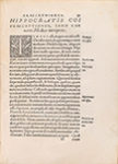 Ex Officina Ioannis Oporini, 1543. 8º mayor. 4 h. + 105 p. + 7 h. Texto con apostillas marginales, bonitas capitales xilografiadas. Papel algo debilitado, pero grueso. Algún cerco de humedad en la parte inferior. Enc. en pergamino reciente, lomera rotulada. Janus Coronario fue un erudito humanista del s. XVI, cercano a Erasmo, que editó numerosos textos hipocráticos.
