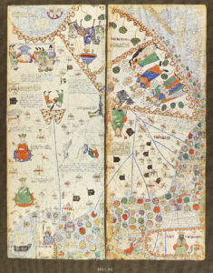 color de 35 x 43 cm, con la reprodución facsímil del Atlas Catalán en tela, más otra lám. de presentación, en funda de tela editorial. Acompañada del libro de estudio ´El mon i els dies´ presentado por Jaume Miranda i Canals, con una extensa explicación e ilustraciones de cada lám. Todo presentado en estuche y caja de cartoné editorial. Perfecto estado.