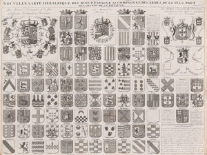 gouvernement civil de l´Espagne et de tous les conseils souverains, Nº 33. Carte cronologique et historique pour servir a l´Histoire d´Espagne, nº 35. Nouvelle carte heraldique des rois d´Espagne..., nº20. Extraídos del ´Atlas Historique´ publicado en Amsterdam entre 1705 y 1720. Todo el texto en plancha, en francés.44 x 56 cm. c/u. aprox. Plegados.