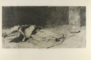 1867. GRABADO: FORTUNY, MARIÀ: KALYBE MORT. 21 x 41 cm, huella, 60 x 50 cm aprox. papel. Aguafuerte y aguatinta, firmado en plancha. Algún punto de óxido marginal.
