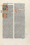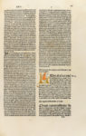 gótica, texto a dos columnas. Huecos para capitales rellenados con miniaturas en colores. La primera hoja del primer tratado con gran orla miniada; en la primera hoja del segundo (Quartus sententiarum) inicial T, a plena página con decoración de animales fabulosos. Anotaciones manuscritas en los márgenes del s.XV. Muy buen ejemplar salvo unas manchas antiguas de humedad en las primeras y últimas hojas. Magnífica encuadernación portuguesa de mediados del siglo XIX, con decoración de hojas de acanto en seco en los planos combinado con doble recuadro en dorados y óvalo central; broche de plata cincelada de reminiscencias judaicas. En este volumen se encuentran juntas dos obras de Escoto, las ´Questiones quodlibetales´ y la cuarte parte de las ´Questiones libros sententiarum´. Es un bello incunable digno de una magnífica biblioteca. IBE 2200. Goff D-382.