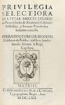 alguna hoja corta de margen derecho, sin afectar caja de texto. Cules-de-lampe xilografiados. [Sigue:] CALDERON DE ROBLES: PRIVILEGIA SELECTIORA MILITIAE SANCTI IULIANI DE PEREIRO (HODIE DE ALCANTARA) CISTERCIE[N]SIS ORDINIS, À SUMMIS PONTIFICIBUS HACTENUS CONCESSA. Matriti: Ex Officina Didaci Diaz a Carrera, 1662. 1 h. + 236 p. Grabado calcográfico en la portada. Palau 40229. Dos obras enc. juntas en un vol. la primera es una edición que Palau no menciona y aunque tiene el grabado calcográfico con el retrato de Felipe IV, le faltan 8 p. del principio. Antiguos subrayados y anotaciones marginales en tinta. Enc. en pasta española, nervios, tejuelo, cortes jaspeados.