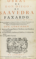 1678. (HERÁLDICA). SAAVEDRA FAJARDO, DIEGO DE: OBRAS. IDEA DE UN PRINCIPE POLITICO-CHRISTIANO, REPRESENTADA EN CIEN EMPRESAS. Amberes: en casa de Geronymo Verdussen, 1678. Folio menor. 6 h. (inclusive portada) + 398 p.+ 2 h. (índice). Ilustr. con...