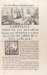 Imp. particular del autor para sus obras, 1769. Folio. 8 h. + XX p. + 3 h. + 522 + XVIII p. Portada con escudo heráldico de Castilla dibujado por Murguía, retrato de Carlos III dibujado por J. Camaron y grabado por Vicent Galcerán, además una lám. entre las p. 112 y 113. Bellamente ilustr. con capitales, cabeceras y culs-de-lamp calcográficas y xilográficas. Corto del margen derecho, que afecta ligeramente los grabados y la portada. Pequeña restauración en la portadilla y que llega levísimamente al retrato de Carlos III. Enc. en media piel de finales del s. XVIII, cortes pintados, cantos y puntas rorzadas, hierros secos en la lomera y marca de punzón. Palau 28302.