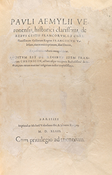 1544. LIBRO: (HISTORIA). PAULI AEMYLII VERONENSIS: DE REBUS GESTIS FRANCORUM , AD CHRISTIANISSIMIM GALLIARUM REGEM FRANCISCUM VALESIUM... ADDITUM EST DE REGIBUS ITEM FRANCORUM CHRONICON... Parisiis: Imp. Michaël Vascosanus Sibi, & Iohanni Roigny,...