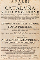 Llopis, 1709. 3 vol. en 4º mayor. I: 10 h. + 364 p. + 18 h. II: 12 h. + 504 p. + 30 h. Fino taladro en el margen interior de todo el vol. III: 11 h. + 655 p. + 26 h. Capitales, cabeceras y culs-de-lampe xilografiados, texto a dos tintas y con apostillas marginales. Tres vol. enc. en cartoné, con la lomera de piel, rozada, doble tejuelo, nervios, cortes pintados; los tres cortos de márgenes sin afectar caja de texto. Todos presentan algún cerco de humedad puntual y óxido. A pesar de los defectos es buen ejemplar y completo. Marca manuscrita de antiguo propietario en la portada del primer vol. Esta es una de las obras capitales de la historiografía catalana, escrita por un Barcelonés abogado, economista e historiador; fue famoso por su defensa del proteccionismo y de la simplificación fiscal. Participó en la fundación de la Compañía textil Santa Cruz y representó a Catalunya en la Junta Central de Comercio. Durante la guerra de Sucesión apoyó al archiduque Carlos de Austria. Primera edición. CCPB 198279-6. Palau 87471.