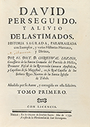 1759. LIBRO: (HISTORIA SAGRADA). LOZANO, CHRISTOVAL: DAVID PERSEGUIDO, Y ALIVIO DE LASTIMADOS. HISTORIA SAGRADA, PARAFRASEADA CON EXEMPLOS, Y VARIAS HISTORIAS HUMANAS, Y DIVINAS. Madrid: Joachin Ibarra, 1759. 3 vol. en 8º mayor. I: 4 h.+ 424 p. fina...