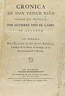 1782. LIBRO: (HISTORIA-CRÓNICAS). GUTIERRE DIEZ DE GAMES: CRONICA DE DON PEDRO NIÑO CONDE DE BUELNA. Madrid: Imp. Antonio de Sancha, 1782. 4º. VIII + 236 p. + 2 h. Primeras hojas roídas en una esquina, sin afectar el texto. [Sigue:] SUMARIO DE...