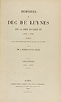 piel, doble tejuelo, nervios. Muy rara completa, como esta. Testimonio del duque de Luynes de su vida en la corte de Luis XV, donde vivió el esplendor desmesurado de una corte que vivía ajena del pueblo y sus problemas.