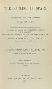 1877. LIBRO: (CARLISMO-EJEMPLAR ÚNICO). DUNCAN, FRANCIS: THE ENGLISH IN SPAIN; OR , THE STORY OF THE WAR OF SUCCESSION BETWEEN 1834 AND 1840. COMPILED FROM THE LETTERS, JOURNALS, AND REPORTS OF..., [PRECEDE LA OBRA:] NOTE TO THE SEVERAL LIVES OF...
