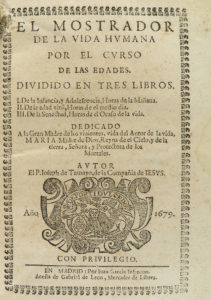 1679. LIBRO: (CRISTIANISMO). TAMAYO, IOSEPH DE: EL MOSTRADOR DE LA VIDA HUMANA POR EL CURSO DE LAS EDADES. DIVIDIDO EN TRES LIBROS. Madrid: Iuan Garcia Infançon, a costa de Gabriel de Leon, 1679. 8º mayor. 8 h. + 448 p. + 20 h. Portada con orla y...