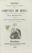 CRETINEAU-JOLY, J.: HISTORIA RELIGIOSA, POLÍTICA Y LITERARIA DE LA COMPAÑIA DE JESUS. Trad. de J. Roca y Cornet y J. Rubió. Barcelona: Imp. Juan Oliveres, 1845. 7 vol. en 8º. I: 2 h. + IV + 322 p. + 1 h....