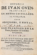 manuscritas al final con ´Noticias biográficas de Juan Oven´ (Bilbao, 1927). Ilustr. con capital y cul-de-lampe xilografiadas. Error de paginación: salto de la página 190 a la 201, pero completo. Enc. en pasta española de época Primera edición. Palau 207460: ´Las adiciones en verso de D. Francisco de la Torre y Sebil, ocupan tanto espacio como las composiciones de John Owen, verdadero nombre del autor inglés. La obra original de Owen está escrita en latín´.