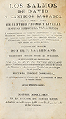 1786. LIBRO: (POESÍA HEBREA). LALLEMANT: LOS SALMOS DE DAVID Y CÁNTICOS SAGRADOS, INTERPRETADOS EN SENTIDO PROPIO Y LITERAL EN UNA BREVÍSIMA PARÁFRASIS. Madrid: Oficina de Benito Cano, 1786. 8º. 13 h. + 1 grabado + 510 p. + 16 h. ( de 18). Texto...