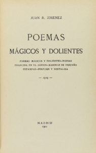 1911. LIBRO: (LITERATURA-MODERNISMO). JIMÉNEZ; JUAN R.: POEMAS MÁGICOS Y DOLIENTES. Poemas mágicos y dolientes - Ruinas - Francina en el jardin - Marinas de ensueño - Estampas - Perfume. Madrid: Revista de Archivos, 1911. 8º. 214 p. Enc. en...