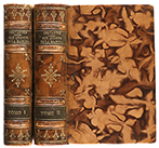 Cervantes + 1 h. (portada con orla arquitectónica) + XX p. + portada de papel porcelana grabada+ 351 p.+ 1 h. + 5 lám. II: portada con orla arquitectónica + XII p.+ portada de papel porcelana grabada +1 h. + 377 p.+ 1 h. + 5 lám. + 1 mapa plegado. Retrato del autor calcográfico. firmado por E. Stalker. Algo de óxido. Dos vol. enc. en plena piel, doble tejuelo, nervios y dorados, corte superior tintado. Palau 52059: ´... Segunda edición miniatura. Igual a la de 1827, salvo que se dividió en 2 vol. permitiendo espaciar algo más las líneas y se le añadieron 2 lám.´ Bonsoms 545. Riu 89. CCPB 239641-6.