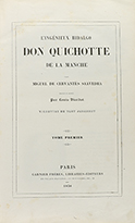 1850. LIBRO: (CERVANTINA). CERVANTÈS SAAVEDRA, MIGUEL DE: L´INGÉNIEUX HIDALGO DON QUICHOTTE DE LA MANCHE. Trad. Louis Viardot. Paris: Garnier Frères, 1850. 2 vol. en 4º. I: Frontis grabados + 2 h. + 744 p. II: 1 h. + frontis decorado en estilo...
