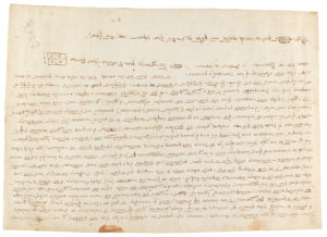 1263. MANUSCRITO: (BARCELONA). MANUSCRITO SOBRE PERAGAMINO DE UNA VENTA DE MOLIENDA EN BARCELONA. 18 x 25 cm. Manuscrito dado en Barcelona ante notario, con signum. Es la venta de la cuarta parte de una molienda de Pedro de Cabañas y su mujer a...