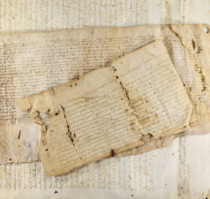 Firmado ante notario en marzo de 1412, un testamento otorgado a Siblia Matrí. El segundo, 15 x 27 cm, con pequeñas faltas que afectan el texto. Dado en 1456, un ápoca de pago de la dote de Guillem Pradell. El último de 22 x 45 cm, firmado en abril de 1464, es una venta perpetua de una pieza de tierra hecha por Pere Bayer, de la parroquia de Sant Esteve de Llemana.