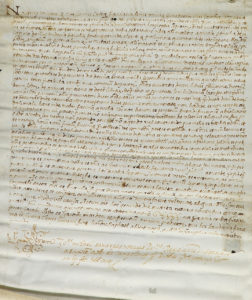 1520-1589. MANUSCRITO: (PERGAMINO-GIRONA). DOCUMENTO NOTARIAL MANUSCRITO RELATIVO A LA GESTIÓN DEL HOSPITAL DE LEPROSOS DE GERONA. Manuscrito en latín. 29 x 29 cm. Documento relativo a la gestión y/o donaciones del hospital de leprosos de Gerona:...