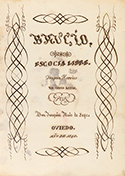 independencia de Escocia. Todo manuscrito y la portada decorada con elegantes filigranas. De la misma mano, en regular caligrafía itálica. Lleva faltas cubiertas de papel protegidas por un fino cartoné. No hemos hallado evidencia de que la obra se editara, muy raro.