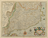 1628 ca. MAPA: (CATALUNYA). MERCATOR; HONDIUS: CATALONIAE PRINCIPATUS DESCRIPTIO NOVA. Mapa grabado al cobre, coloreado. plancha 38 x 48 cm. Bonito coloreado, monstruos marinos, lleva rosa de los vientos y dos cartelas en la parte inferior. Texto en...
