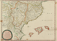 1653. MAPA: (ARAGÓN- CATALUNYA- VALENCIA-MALLORCA). SANSON D´ABBEVILLE, S.: LES ESTATS DE LA COURONNE D´ARRAGON EN ESPAGNE OU SONT LA CATALOGNE PRINCIPte, LA VALENCE ROYAUME, ET LES ISLES DE MAIORQUE. Paris: Chez Pierre Mariette, 1653. 42 x 56,5...