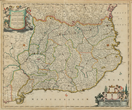 1660 ca. MAPA: (CATALUNYA). WIT, F. DE: ACCURATISSIMA PRINCIPATUS CATALONIAE ET COMITATUUM RUSCINONIS ET CERRETANIAE DESCRIPTIO. Mapa grabado al cobre y coloreado de época. 51 x 58,5 cm. Papel ligeramente tostado. Colomer 25.