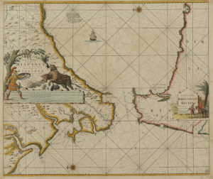 1704. MAPA: (CARTA NÁUTICA- MÁLAGA). KEULEN, IOHANNIS VAN: NIEUWE PASKAART VAN DE KUST VAN HISPANIA van de Kust tot aan Velez Malaga als mede de Kust van BARBARIA... Amsterdam. Mapa calcográfico sobre papel verjurado. Huella: 51 x 58 cm; papel: 52...