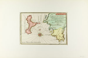 L´ISLE, ET DES ISLES FROMENTIERES (1930); PLAN DE LA RADE D´ALICANT; PLAN DE LA BAYE DE GIBRALTAR. Huella: 19 x 26,5 cm, papel: 20 x 28 cm. Iluminados a mano, uno de ellos presentado en paspartú.