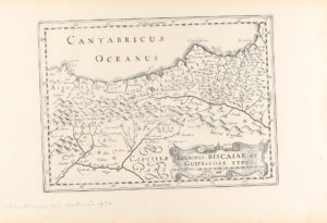 1730 ca. MAPA: (VIZCAYA-GUIPÚZCOA). LEGIONIS. BISCAIAE ET GUIPISCOAE TYPUS. 18,5 x 25 cm huella, 24,5 x 36 cm papel. Sobre papel verjurado. Se trata del mapa de Johannes Cloppenburg, que sigue la versión algo mayor de Mercator y Hondius.