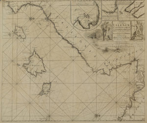 1750 ca. MAPA: (CARTA NÁUTICA-BALEARES). KEULEN, JOHANNIS VAN: PASKAART VAN DE ZEE-KUSTEN VAN VALENCE, CATALONIEN, LANGUEDOCQ EN PROVENCE... YVICA, MAJORCA EN MINORCA... Amsterdam. Mapa calcográfico sobre papel verjurado. Huella: 52 x 60 cm; Papel:...