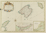 1780 ca. MAPA: (ISLAS BALEARES). B[ELLIN], N.: CARTE DES ISLES DE MAIORQUE, MINORQUE ET YVICE. Mapa grabado al cobre 42,5 x 58 cm huella, 45 x 60 cm papel. Límites coloreados. Galería marginal cerca de la cartela.