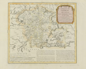 1785. MAPA: (REINOSO-CANTABRIA). LOPEZ, TOMAS: MAPA GEOGRÁFICO DEL PARTIDO DE REYNOSA, UNO DE LOS TRES DE LA PROVINCIA DE TORO. Madrid, 1785. Mapa grabado al cobre. 39 x 42 cm huella, 42,5 x 52 cm papel. Suave coloreado de época. Rastro de cinta al...