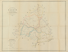 1857. MAPA: (CORREOS-POSTAS). CARTA DE CORREOS Y POSTAS DE LA PROVINCIA DE MADRID. (Madrid): Lit. de Castell, 1862. 12º. Mapa, con los límites acuarelados. Rústica original, lomera sesgada y con restos de cinta adhesiva. Sello húmedo de antiguo...