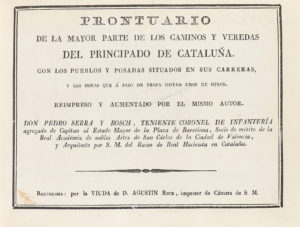 1838 ca. LIBRO: (CATALUNYA-VIAJES). SERRA Y BOSCH, PEDRO: PRONTUARIO DE LA MAYOR PARTE DE LOS CAMINOS Y VEREDAS DEL PRINCIPADO DE CATALUÑA. Con los pueblos y posadas situados en sus carreras, y las horas que a paso de tropa distan unos de otros....