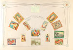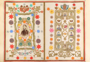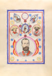 autor y como pie de foto declara haber confeccionado el álbum él mismo. Esta fotografía va muy adornada con orlas doradas, y dibujos geométricos, presumimos que del mismo D. Alejandro. Miles de cromos litográficos a color de cajas de cerillas decoran las más de 100 h. de este álbum. Sin embargo, además de la colección de cromos, sus páginas esconden denuncia política de la época y le dan un atractivo singular. En las primeras hojas encontramos una orla con retratos de hombres que del Pozo define como defensores de la integridad nacional en la Isla de Cuba, el más destacado de ellos el Mariscal Fajardo; estas hojas van adornadas a mano con decoraciones florales, muy bien ejecutadas. Otra de esas páginas está dedicada a la moda en Madrid y lleva retratos femeninos, en otra un magnífico dibujo de una fiesta de toros en la plaza mayor de Madrid. Pero las más destacables de estas son dos páginas completas dedicadas a Isabel II y su marido Francisco de Asís. Cada una presidida por un retrato litográfico de uno de los miembros de la pareja real y decorada alrededor con escudos, retratos, y cromos; todos alusivos a las numerosas indiscreciones sexuales que la reina protagonizó y que, a pesar de los esfuerzos de la institución por frenar las habladurías, eran de todos conocidos. Bajo cada uno de los retratos unas pestañas ocultan dibujos más que explícitos de la incapacidad del rey y la ligereza de la reina, y algunas frases, incluso versos, describen de forma sarcástica la situación del matrimonio. Sobre el retrato de la reina, unos siniestros murciélagos presiden toda la hoja. El conjunto está enc. de época en plena piel con hierros secos en los planos, ruedas y cantos dorados, nervios, planos muy rozados pero sólida.