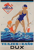 1900-1930 ca. CARTEL: (PUBLICIDAD-LOTE DE CONJUNTO). TRAJES DE BAÑO DUX. Litografía sobre cartón, display de sobremesa. 32 x 22 cm (12,5 x 8,5 in). A. [Más:] DANONE. LA MARCA DE QUALITAT. KEFIR. YOGHOURT NATURAL. SERUM (Xerigot). Litografía...