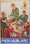 sobre cartoné. 33 x 23 cm (13 x 9 in). Cabecera de un calendario sin hojas. A. [Más:] EL TIPIC POSTRE DEL MES PETIT AL MES GRAN A TOTS ELS AGRADA EL MENJABLANC. Litografía sobre cartoné. 47,5 x 32,5 cm (18,5 x 12,5 in). Pequeña perforación en el margen superior. Anotación manuscrita en el reverso. A.