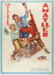 1908. CARTEL: (ALIMENTACIÓN). CHOCOLATES JUNCOSA Y CHOCOLATES AMATLLER. Cromolitografías, base en cartoné. 45 x 31 cm (18 x 12 in). Anónimo, B. 41 x 29,5 cm (16 x 11,5 in). Atribuido a Segrelles, A.